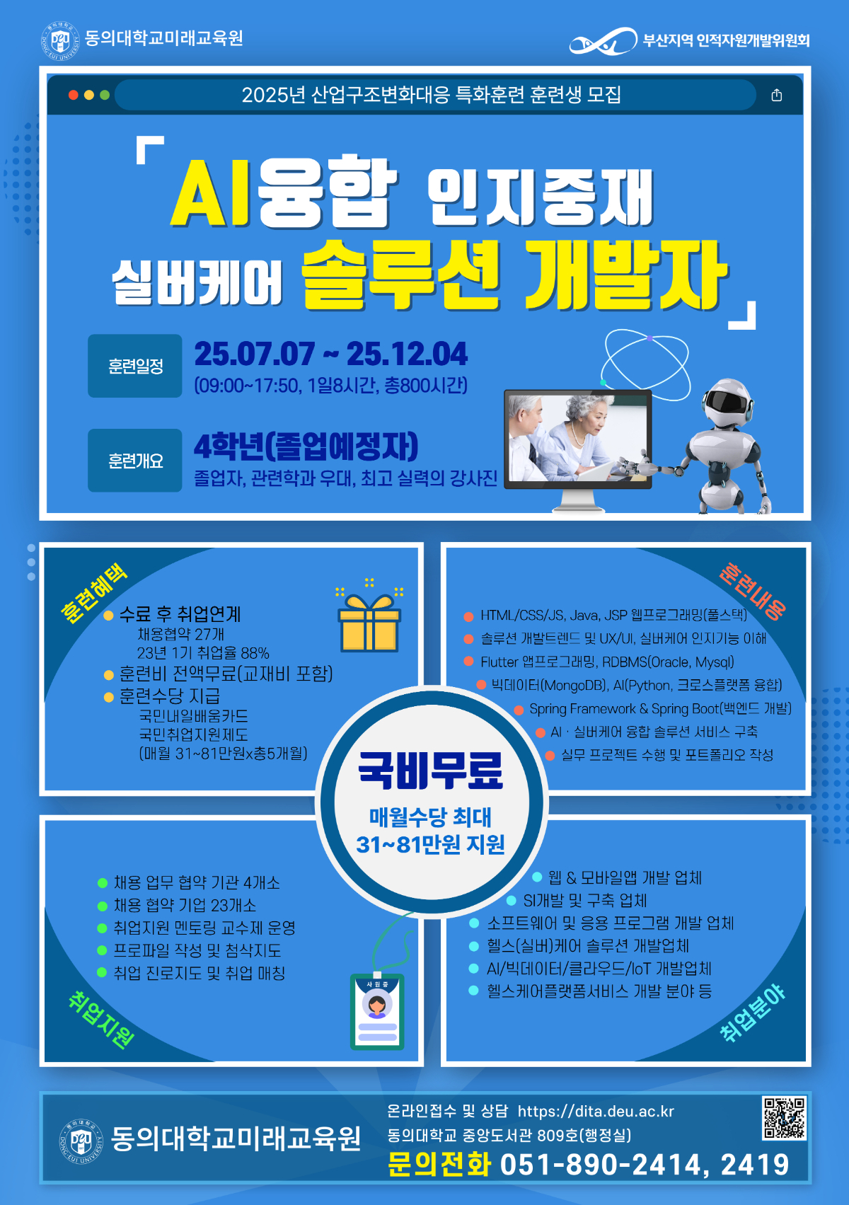 [미래교육원] 국비무료_AI융합 인지중재 실버케어 솔루션 개발자 훈련생 모집